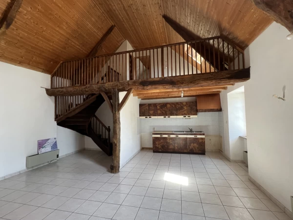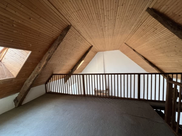 Description de l'appartement : À l'étage, vous découvrirez un magnifique appartement offrant une atmosphère chaleureuse et conviviale. La pièce de vie spacieuse de 37 m2 est dotée d'un haut plafond cathédrale, créant ainsi une sensation d'espace et de liberté. Deux chambres confortables, une salle de bain et des toilettes complètent cet espace de vie idéal pour toute la famille. Informations complémentaires :